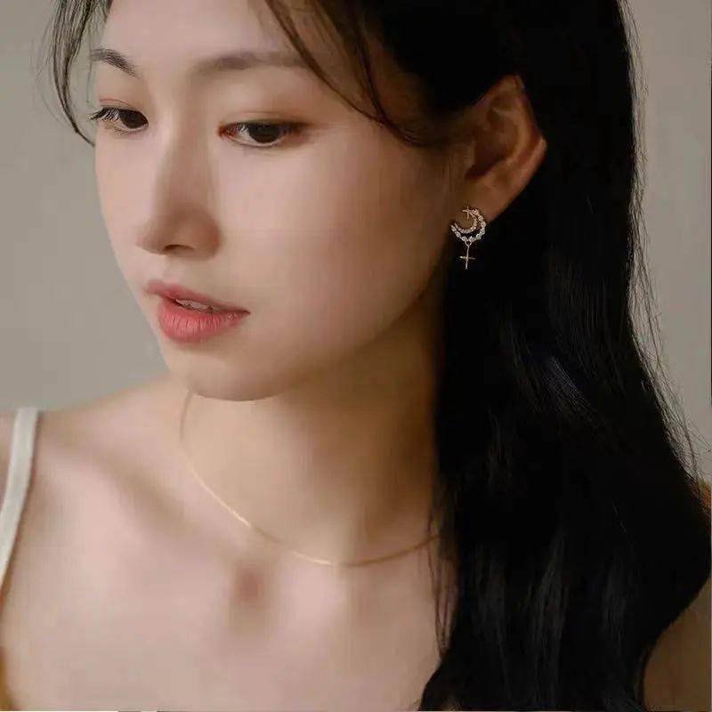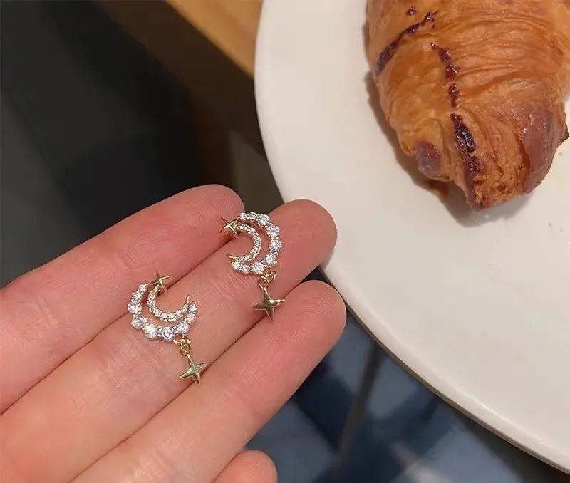 把一般的五角星设计成四角星,多了一点特别的理性化的几何设计感在里面,亮闪闪的坠在耳边,真的非常小巧可爱啊!
