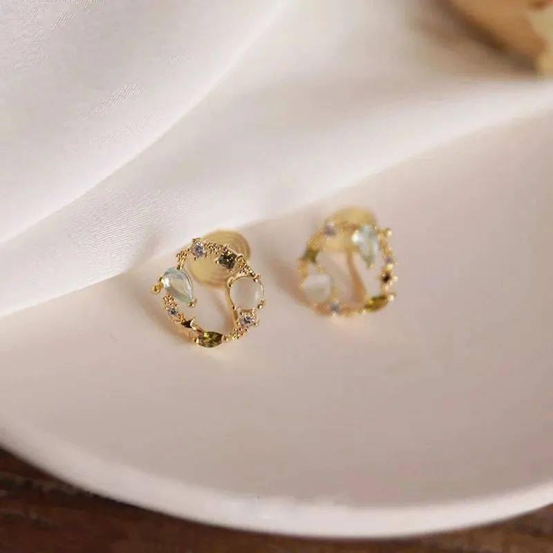而这款耳夹和花环一样,都是圈圈形状的,各色皓石模拟鲜花的颜色,上耳以后自带仙气。
