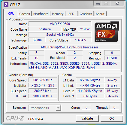 代价之一就是高功耗。据最新数据,FX-9590的核心电压加到了1.5V左右,热设计功耗因此达到了惊人的219W,不一定绝后但肯定空前,FX-9370也有大约200WFX系列的标准热设计功耗为125/95W。