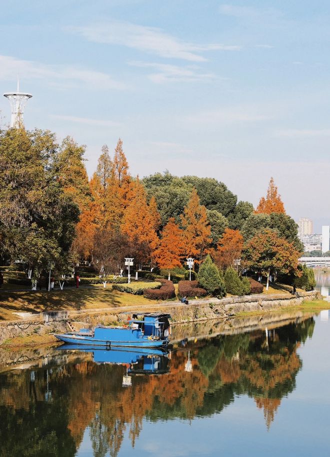 绿意盎然的草地,活力缤纷的骑行道,枝叶繁茂的林荫道,滨河公园中公厕、茶吧,设施齐全、游玩便利,在深秋迎着朝阳散步其中,可以细心拾捡到品类各异的树叶和果实,在车水马龙的城市间,也能体验到别致的捡秋体验。