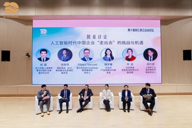 随后的圆桌对话中,来自国际商会(ICC)、意大利GWA Greatway、邓白氏、美森、汇业所的嘉宾们围绕“人工智能时代中国企业‘走出去’的挑战与机遇”展开讨论,嘉宾一致认为,面对AI时代的机遇与挑战,法律行业需加快构建跨领域、跨地域的协作网络,以法治为基、科技为翼,助力中国企业行稳致远。